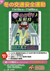 お知らせが遅くなってしまいましたが、冬の交通安全運動が始まっています。 令和7年11月13日~11月22日西安協 活動予定ページはこちら→活動ページ